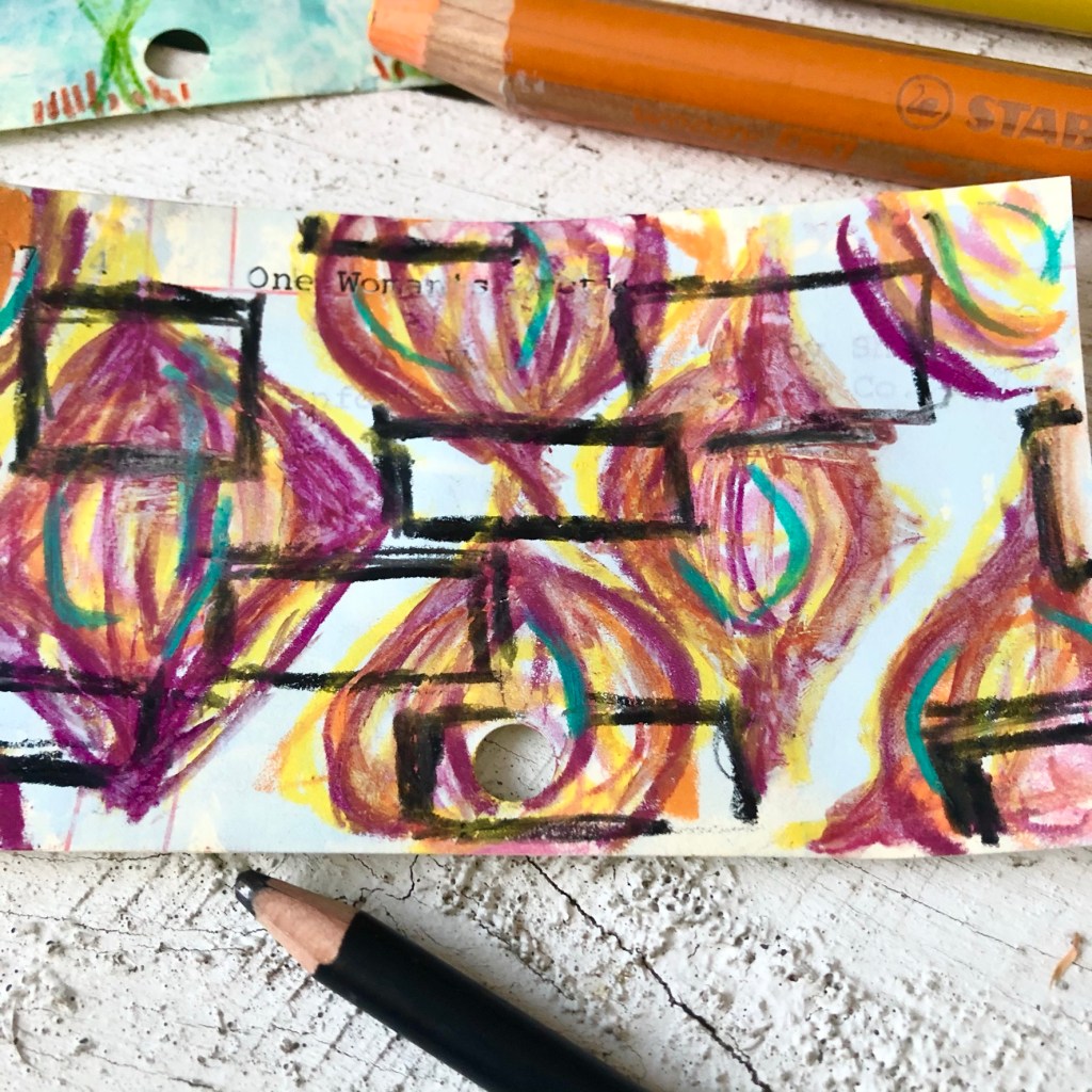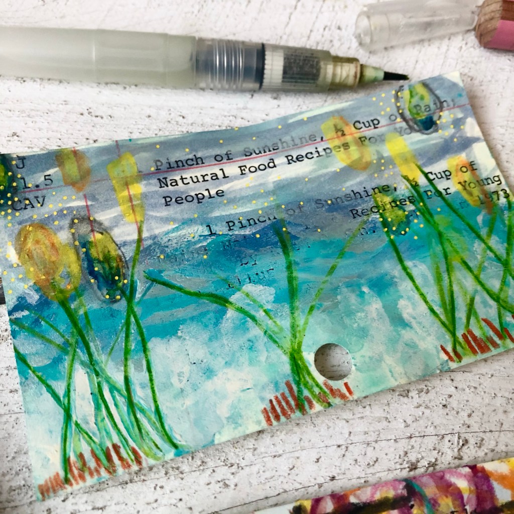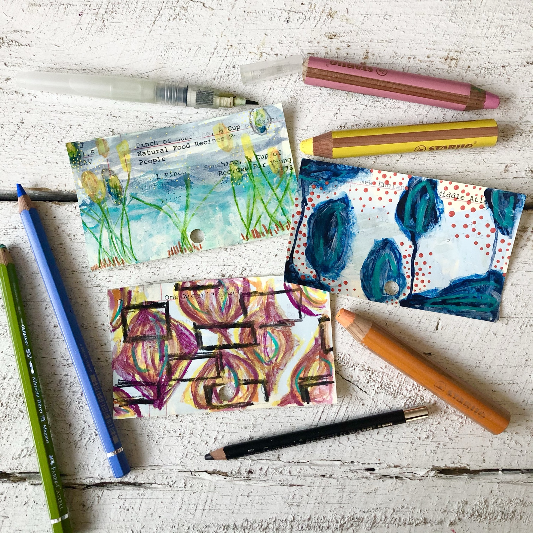 I love that the cards are library cards because each one represents a story. And each piece I create will also hold a story. Some I will share, but others I will need to hold close to my heart. When I started my first 365-day project, it was important to keep my project small and manageable so that it was reasonable to complete one page a day. I love that these cards will force me to work small and within a confined space so that I don’t overwhelm myself. They also remind me of the Index-Card-a-Day challenge by Tammy Garcia of Daisy Yellow Art, who has been a huge inspiration to me over the years and was one of the challenges that helped me develop my own daily creative practice.