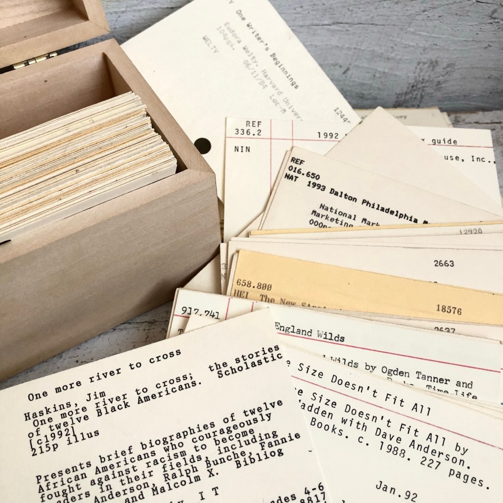I have a beautiful set of vintage library cards that my mom gave me years ago for my birthday. I cherish them and have kept them tightly locked away in a box waiting for the perfect project. But, if I’ve learned anything the past few years, it’s that there is no such thing as perfect and the best way to begin is just to take a leap of faith and dive in. So, that’s what I’m doing.