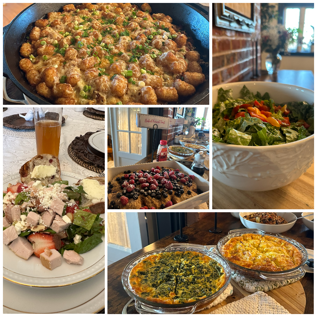 - Your meals Thursday night through Sunday morning (Friday and Saturday will cover breakfast, lunch and dinner). Meals in the past have included items such as turkey cherry chili, French onion tater tot casserole, baked French toast, and lemon blueberry coffee cake.