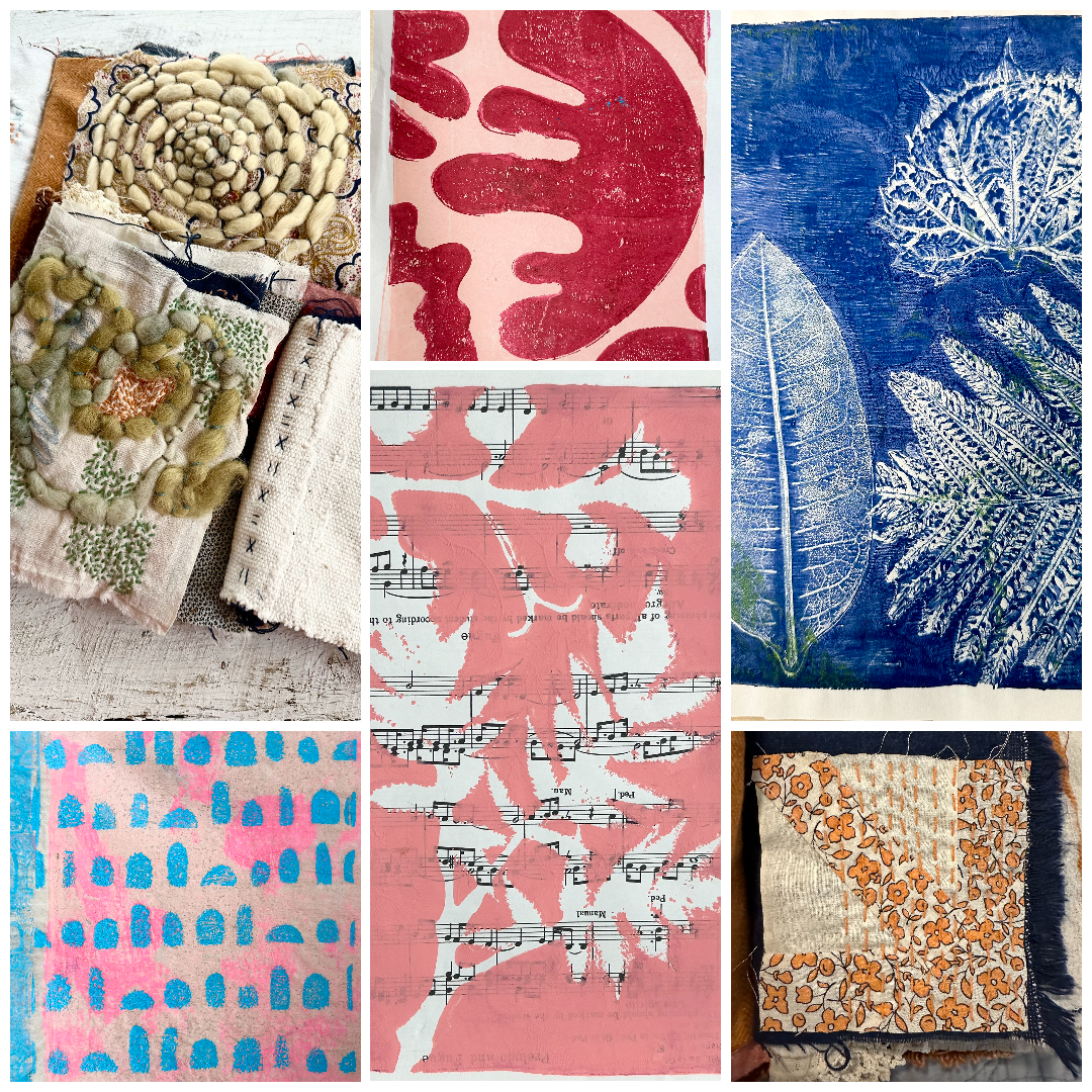 - Gelli plate printing — another retreat favorite! We’ll go over gelli plate basics, share different ways to make monoprints and build layers and also learn how to make faux cyanotype prints on the gelli plate!
